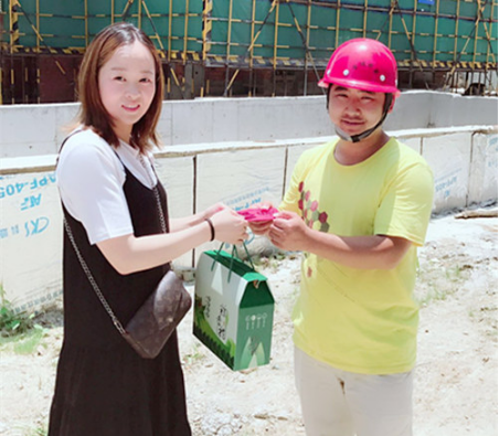 粽子飄香傳四方,思念的心兒在心房。6月15日端午節(jié)前夕,博弘建設(shè)嘉興分公司總經(jīng)理衛(wèi)揚(yáng)勇、綜合管理部經(jīng)理陸婷一行前往各項(xiàng)目部開展端午節(jié)慰問及高溫送清涼的活動(dòng),為節(jié)假日仍奮戰(zhàn)在一線的同事們送去公司的節(jié)日關(guān)懷及慰問。